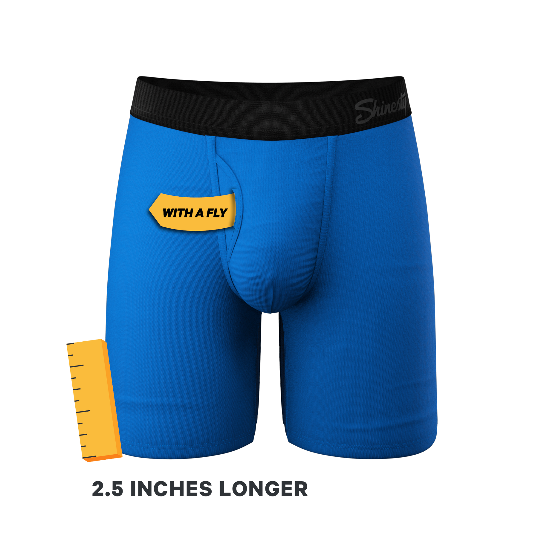 This style comes in a sleek Royal Blue color, exuding confidence and elegance, and is cut in a Long Leg Boxer Brief style to prevent chafing and provide maximum coverage. The fabric is comfortable and keeps your package "more secure than a diamond in a vault, while still leaving you with plenty of room to breathe."
