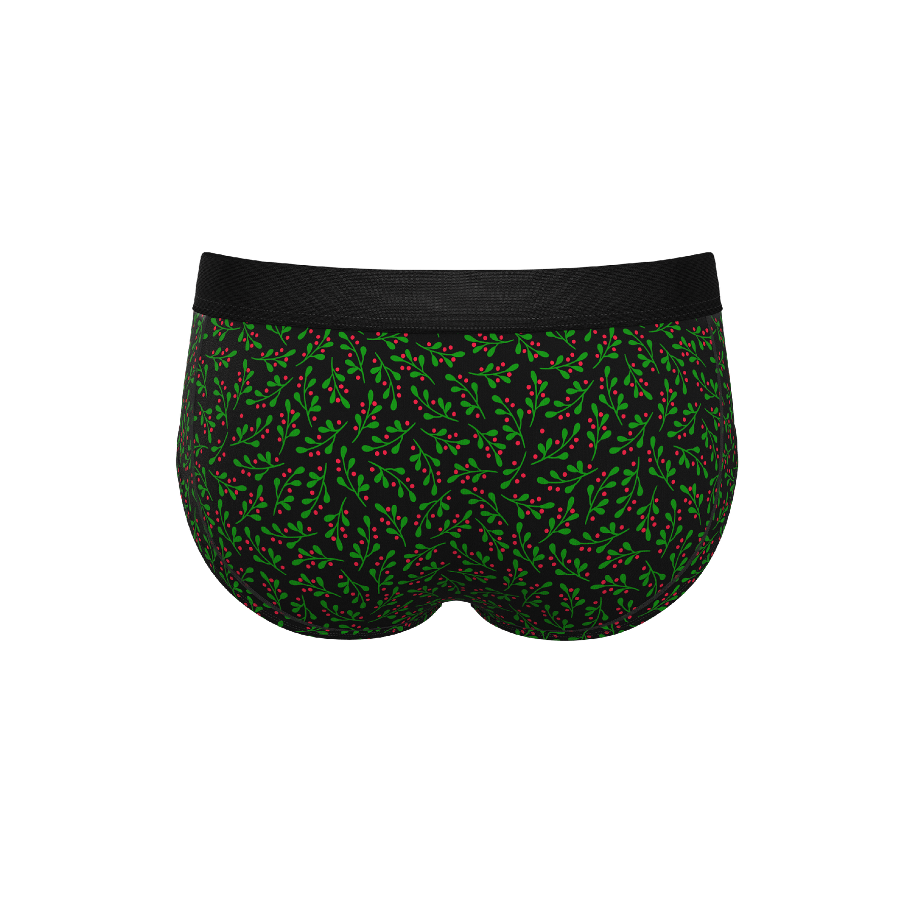 The Kiss Me There briefs feature a festive Christmas Mistletoe print. Unlike standard boxer briefs, these are a Brief cut, providing a classic fit with modern support technology. They are currently in stock and ready to ship for the holiday season.