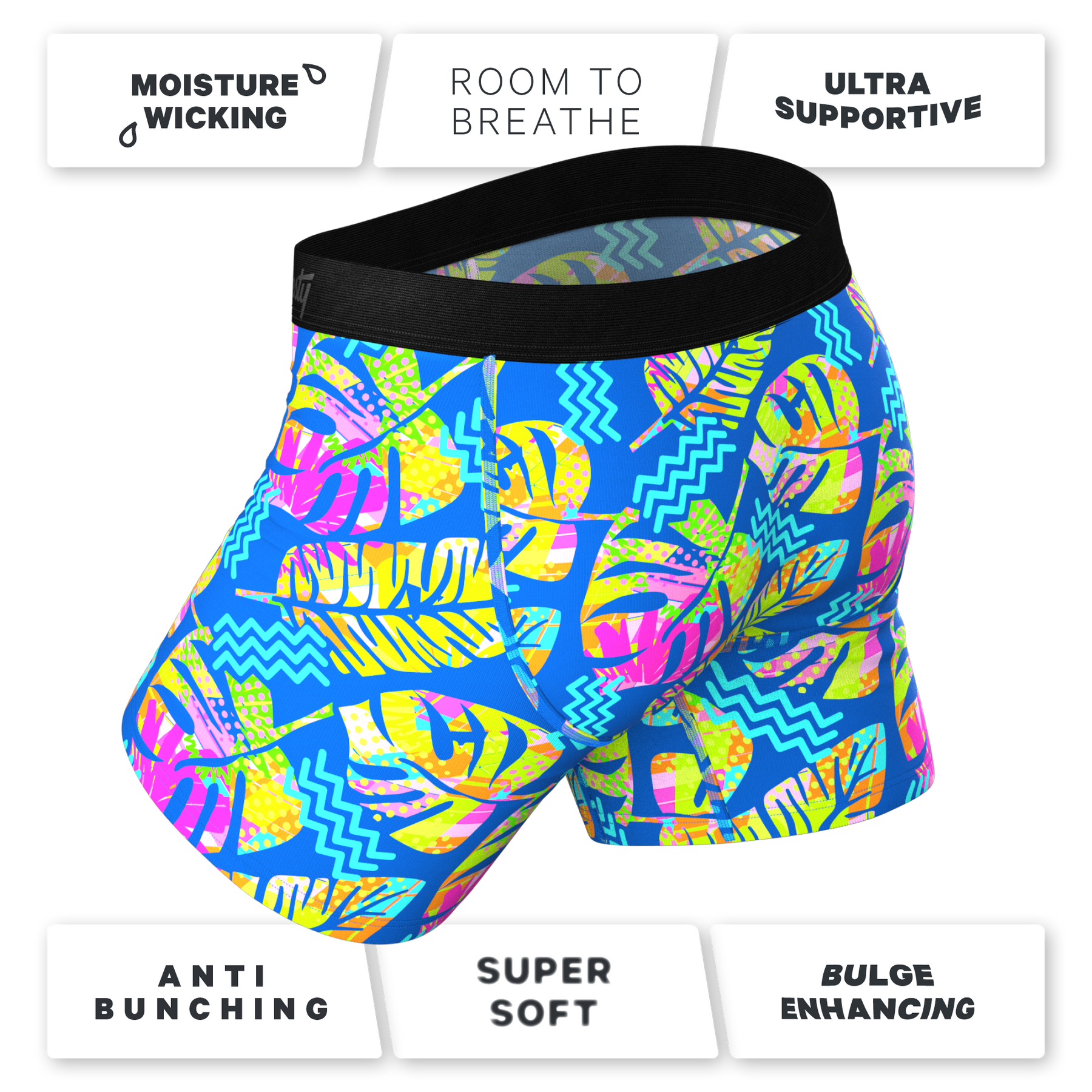 🌴 The Oahu Rendezvous | Tropical Leaves Ball Hammock® Pouch Underwear With Fly