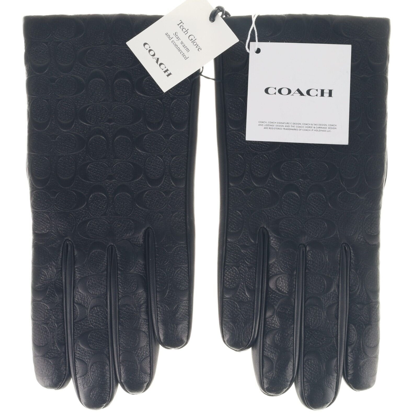 Coach Signature Leather Tech Gloves Embossed Black